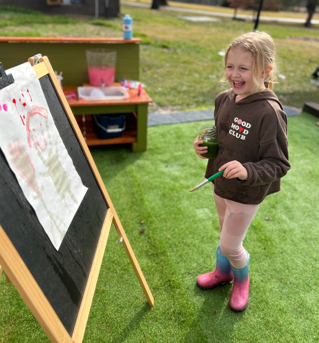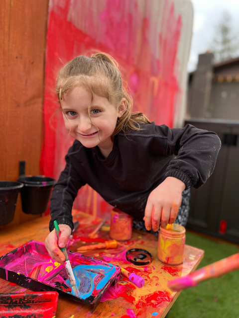 Bring child in old clothes as they will get dirty and be exploring with paint and other mediums!